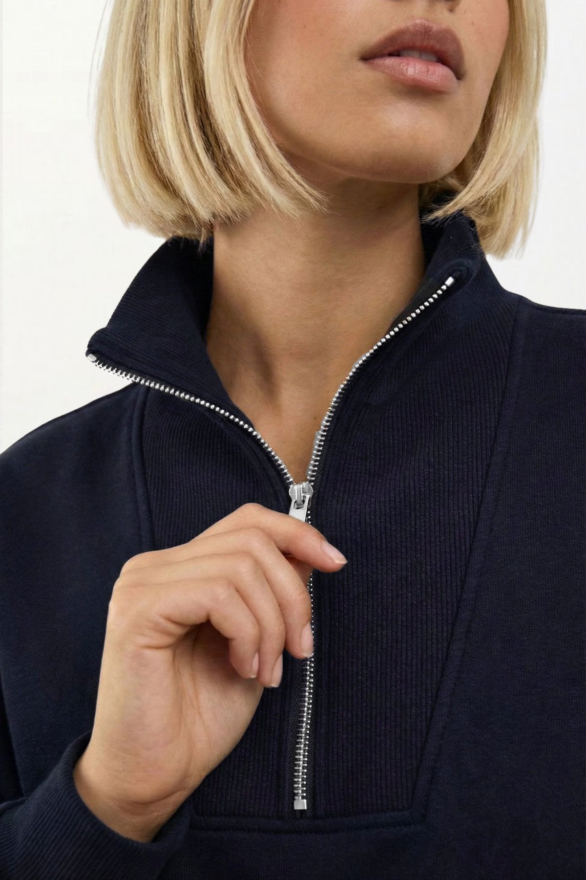 Kahve Fermuarlı Dik Yaka Yumuşak Dokulu Sweatshirt