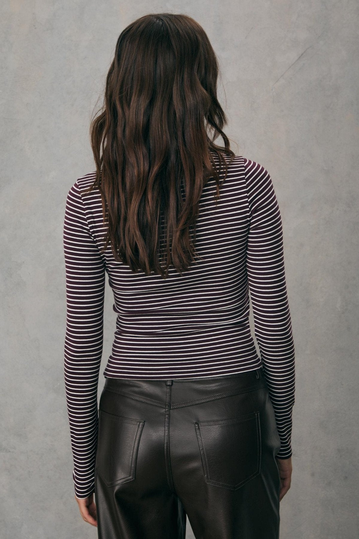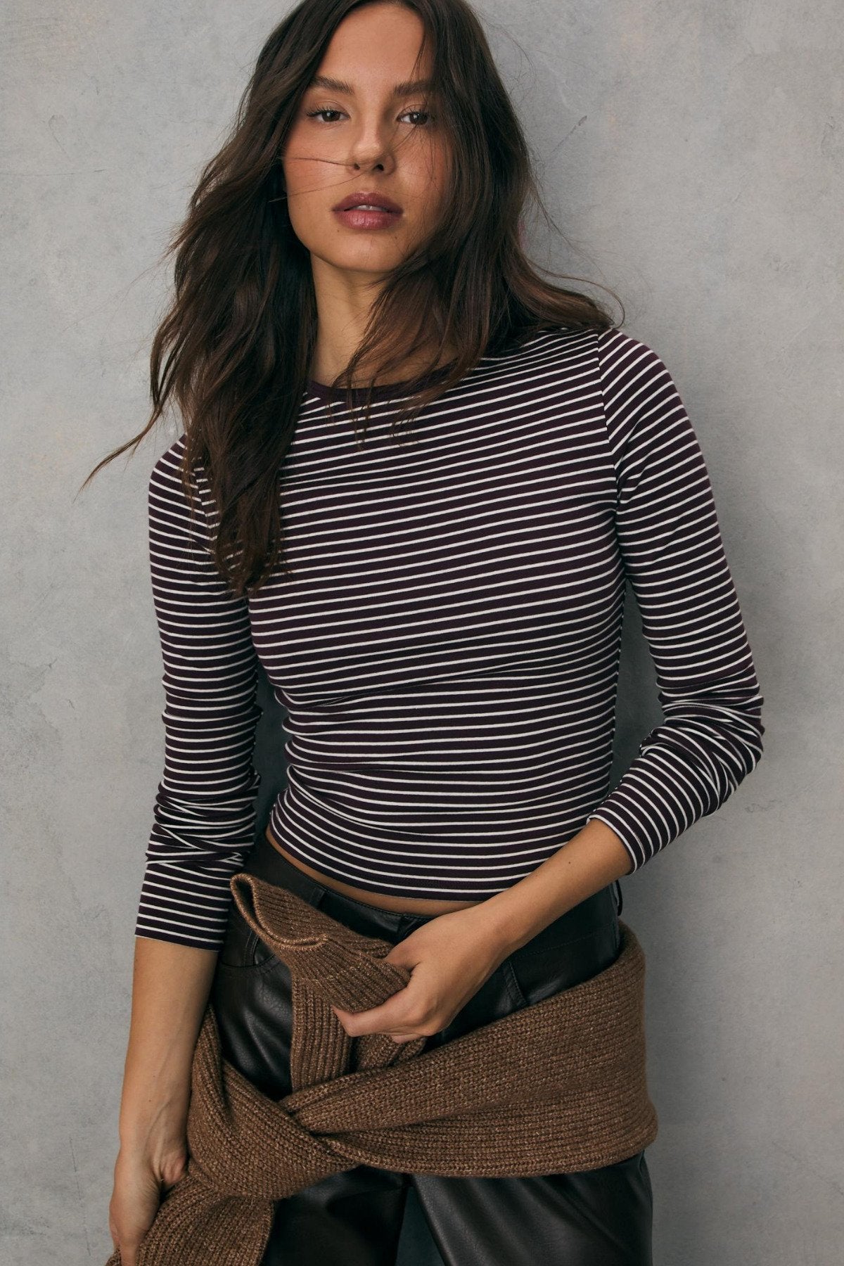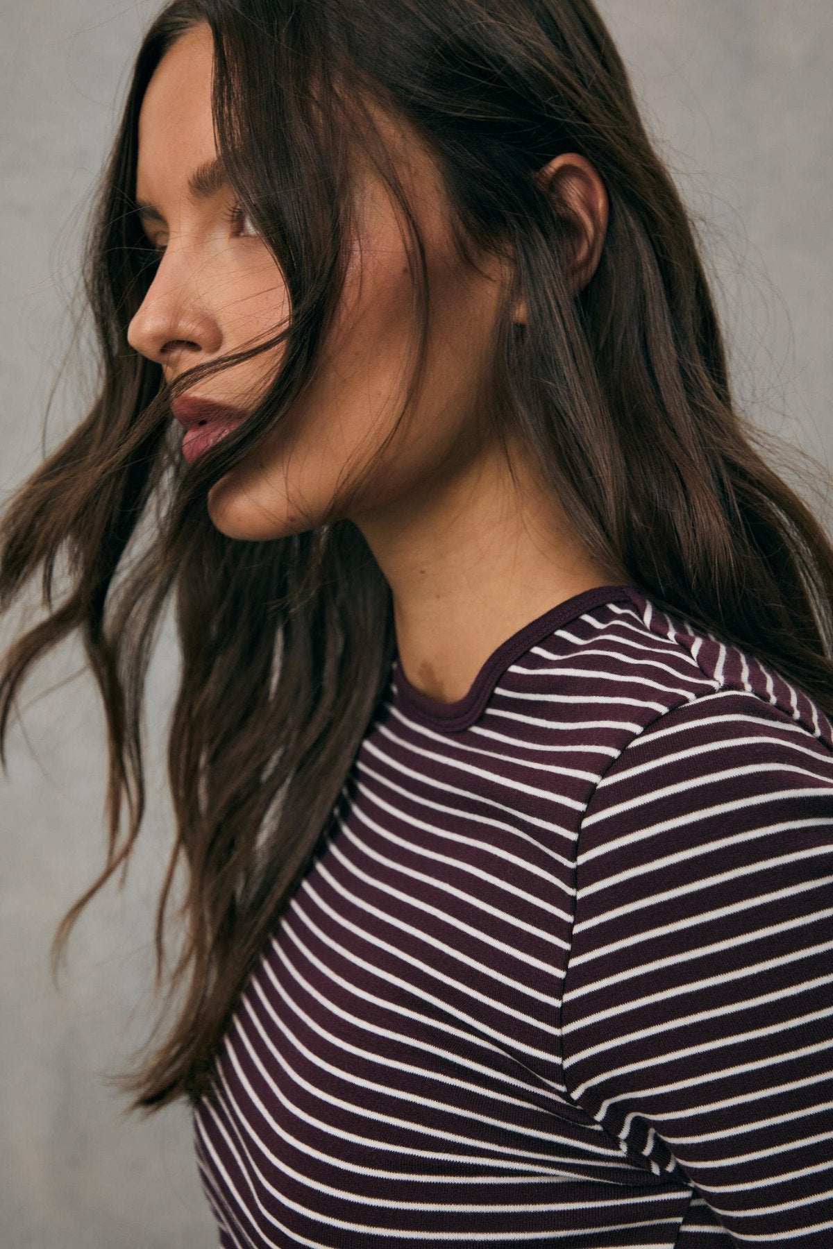 Siyah Çizgili %100 Pamuk Bisiklet Yaka Uzun Kol Bluz