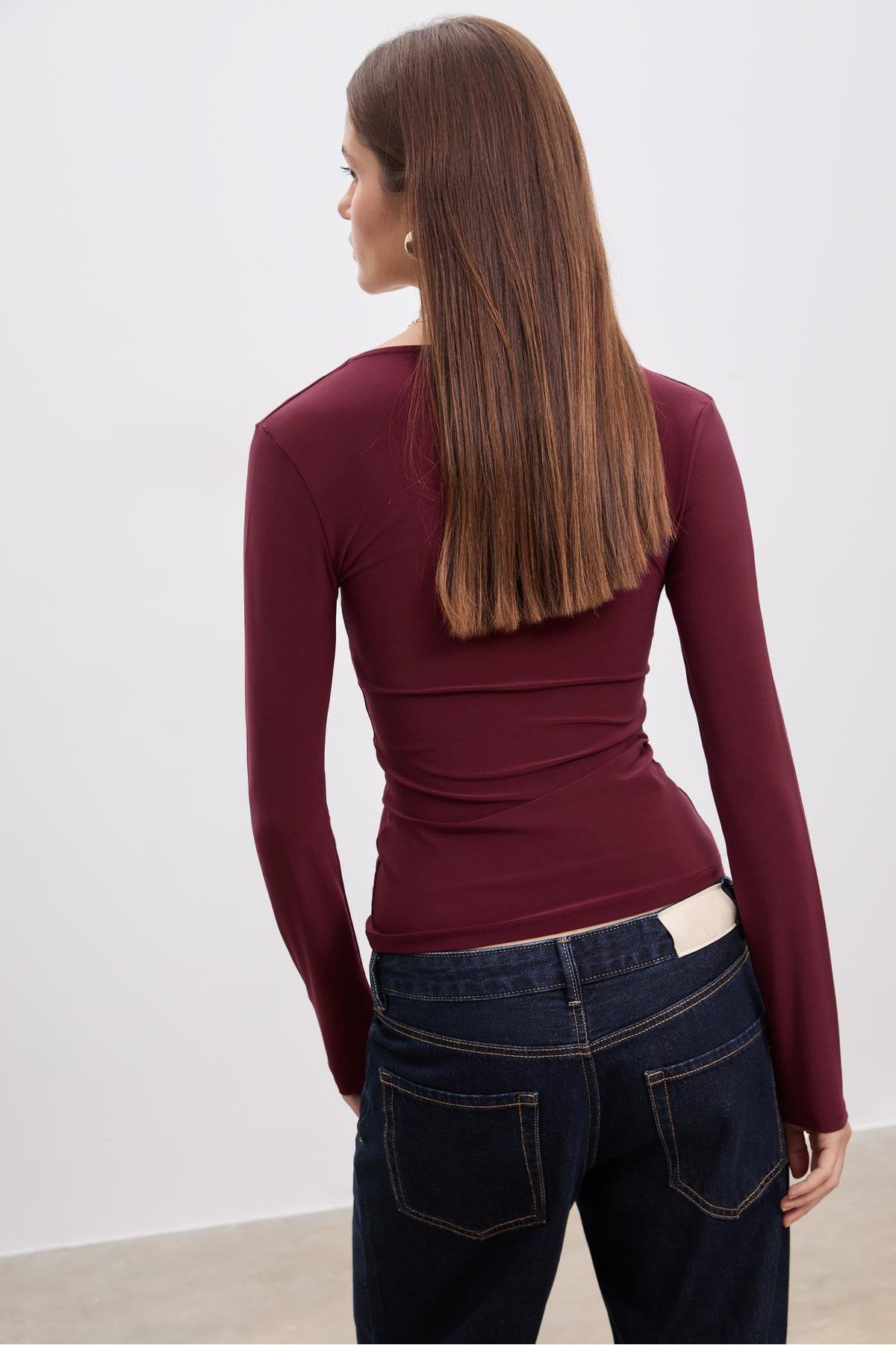 Düğüm detaylı v yaka t-shirt